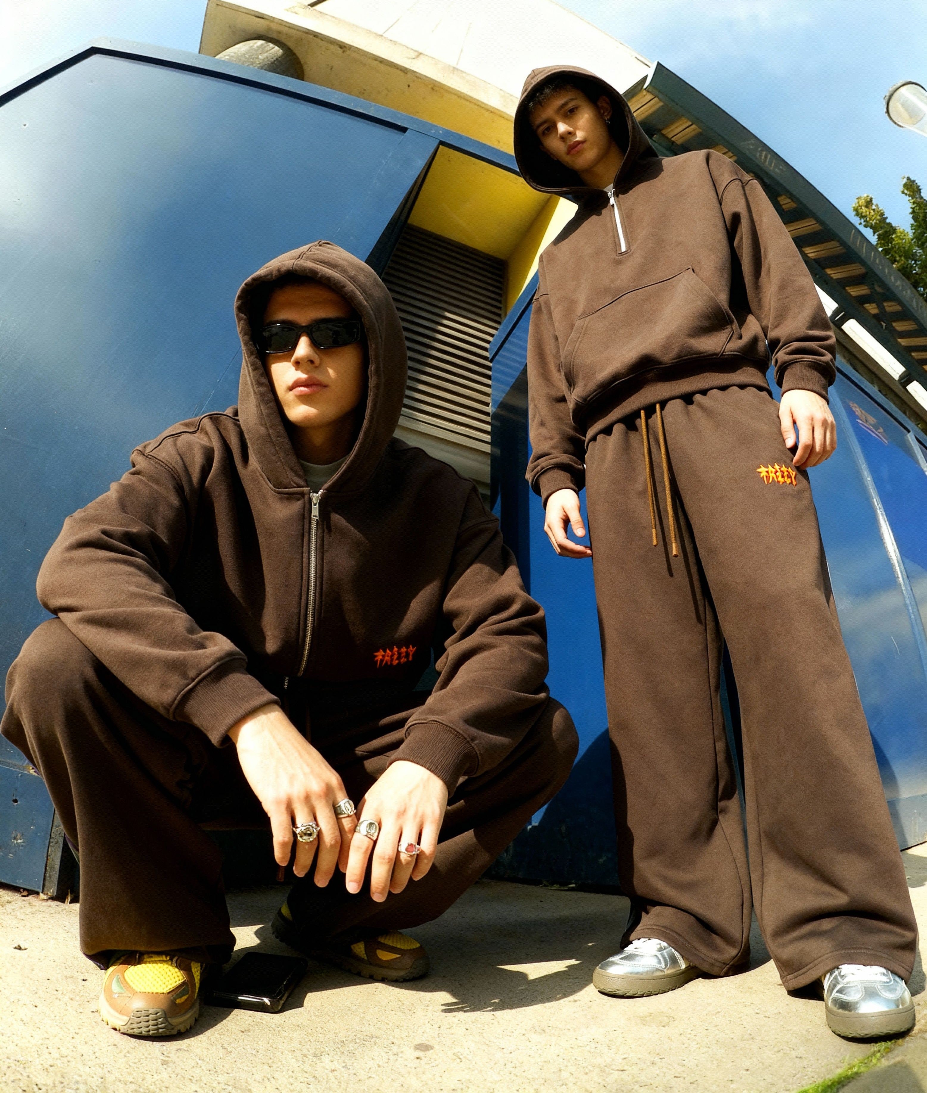 Contrast Tape Raw Edge Double Layered Zip Hoodie